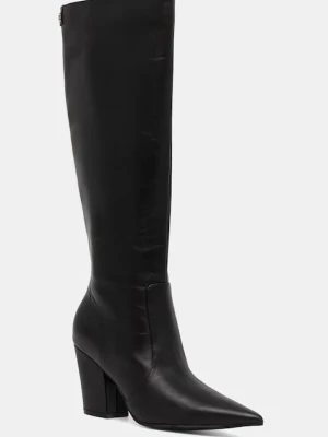 Guess kozaki skórzane NARIEL damskie kolor czarny na słupku FLFNRL LEA11