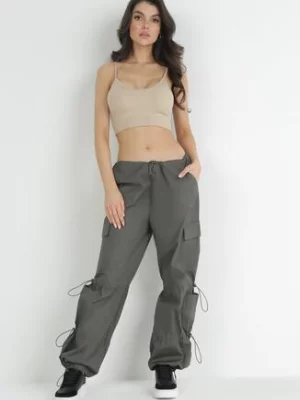 Beżowe Spodnie Spadochronowe ze Stoperami Wakely hello miss