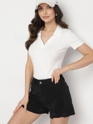 Czarne Klasyczne Szorty Jeansowe z Wysokim Stanem Nusavira hello miss