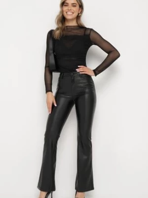 Czarne Spodnie o Fasonie Dzwonów z Imitacji Skóry Horellia hello miss