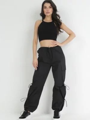 Czarne Spodnie Spadochronowe ze Stoperami w Talii i na Nogawkach Titalia hello miss