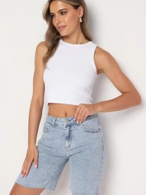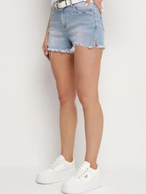 Jasnoniebieskie Szorty Jeansowe z Wysokim Stanem z Bawełny przed Kolano Neliyana hello miss
