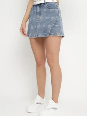 Niebieskie Spódnico-Szorty Jeansowe z Ozdobną Zakładką Ulosellea hello miss