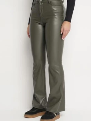 Zielone Spodnie o Fasonie Dzwonów z Imitacji Skóry Horellia hello miss