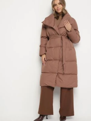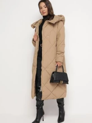Ciemnobeżowa Kurtka Płaszcz z Geometrycznym Pikowaniem Johnatta j.style