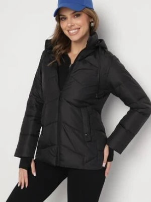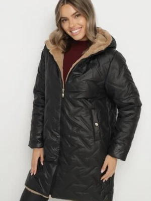 Czarna Długa Kurtka Dwustronna z Pikowanymi Przeszyciami i Kapturem Olidia j.style