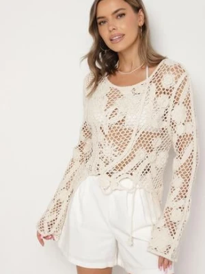Beżowa Szydełkowa Bluzka z Krótkim Rękawem Anasosine rosa