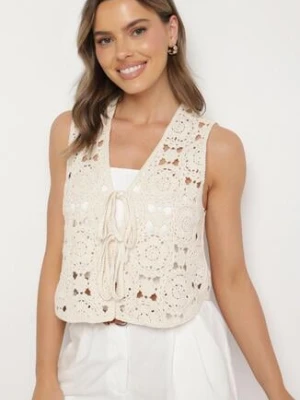 Beżowa Bawełniana Bluzka z Ażurowej Tkaniny z Wiązaniem Banenia rosa