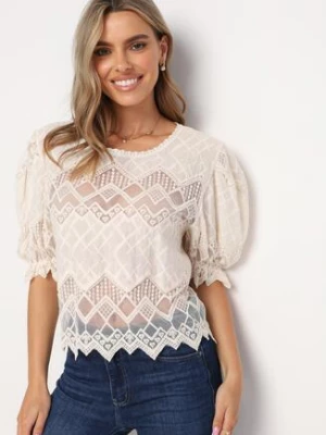 Beżowa Ażurowa Bluzka z Krótkim Rękawem Alirada rosa