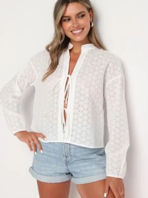 Biała Bluzka Bawełniana z Kołnierzykiem z Wiązaniem na Klatce Piersiowej Sloedi rosa