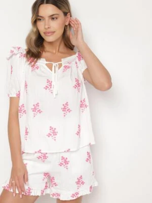 Biała Bluzka o Ażurowym Wykończeniu z Wiązaniem z Przodu Malnena rosa