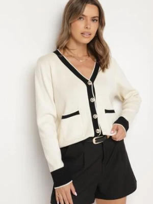 Beżowy Kardigan z Wiskozą z Ozdobną Lamówką i Guzikami Halirena rosa