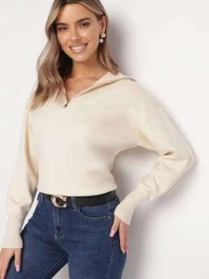 Beżowy Sweter z Golfem Zapinanym na Zamek Tihanas rosa
