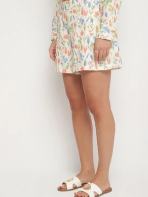 Beżowe Bawełniane Szorty Ozdobione Kwiatowym Motywem Nilandra rosa