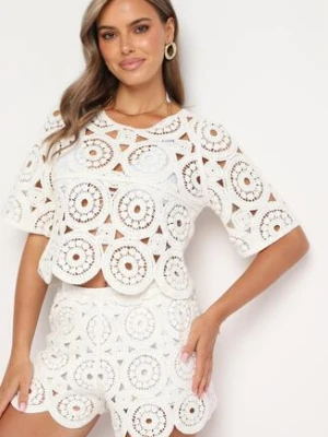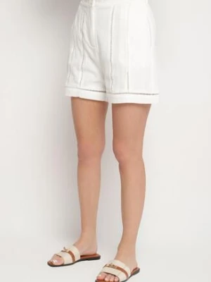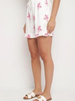 Białe Szorty z Dodatkiem Bawełny i Ażurowym Wzorem Wykończone Gumką w Pasie Dlitha rosa