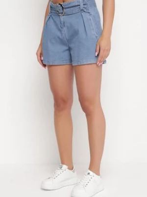Granatowe Bawełniane Szorty z Ukrytym Zamkiem i Szerokim Paskiem z Klamrą Mynna rosa