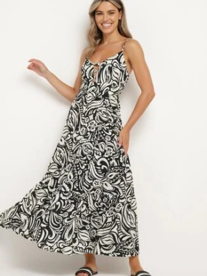 Zielono-Beżowa Rozkloszowana Sukienka ze Ściągaczem w Talii w Stylu Boho Dimirra rosse line