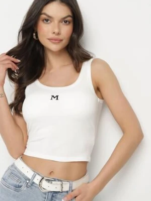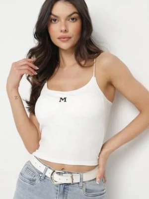 Biały Prążkowany Top z Usztywnianymi Miseczkami i Ozdobną Literą Nevolirae rosse line