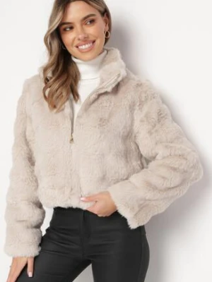 Beżowa Futerkowa Kurtka z Kołnierzem i Suwakiem Braline yu & me