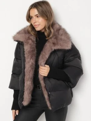 Czarna Pikowana Kurtka Oversize z Futrzanymi Zdobieniami Saranessa yu & me