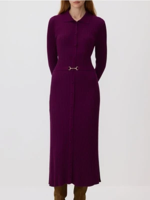 Reserved - Sukienka z paskiem - ciemnofioletowy